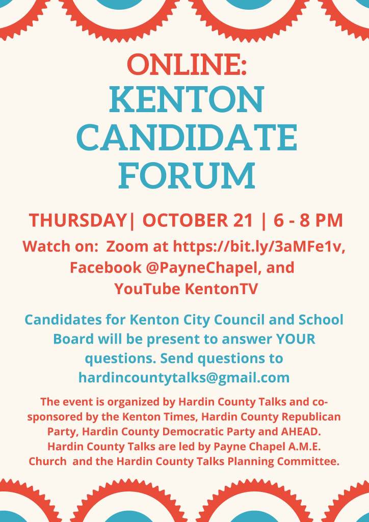 The event is organized by Hardin County Talks and co-sponsored by The Kenton Times, Hardin County Republican Party, Hardin County Democratic Party and Allen and Hardin for Election Action and Democracy (AHEAD).